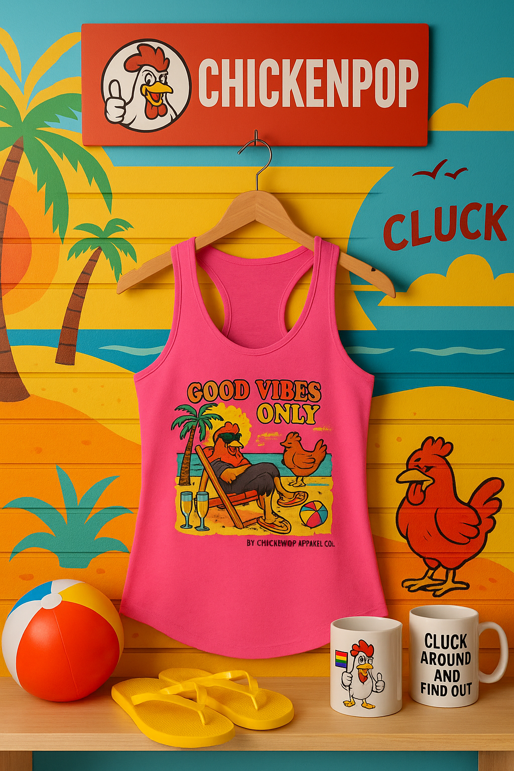β˜€οΈ Good Vibes Only Racerback Tank – by ChickenPop Apparel Co. πŸ”πŸΉ