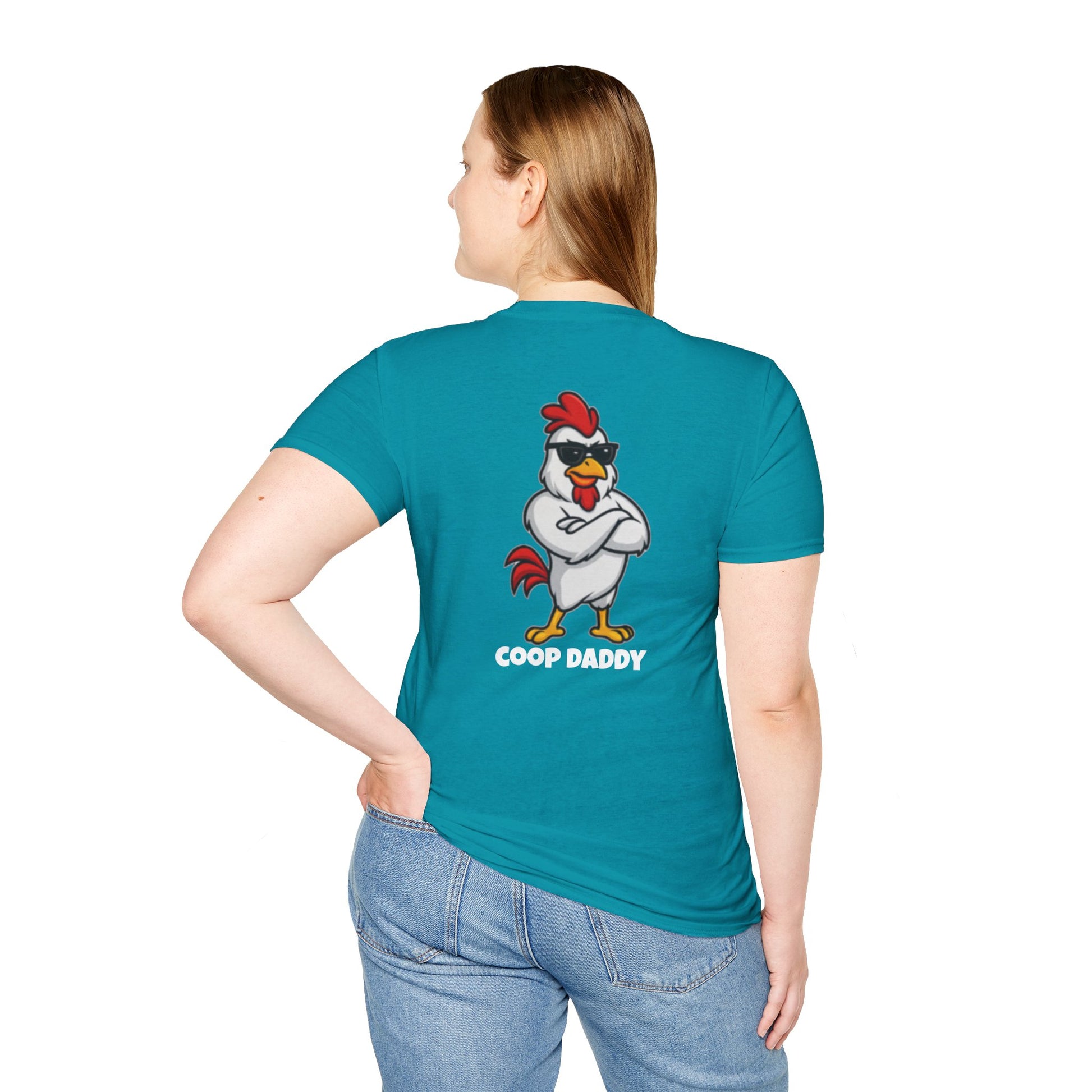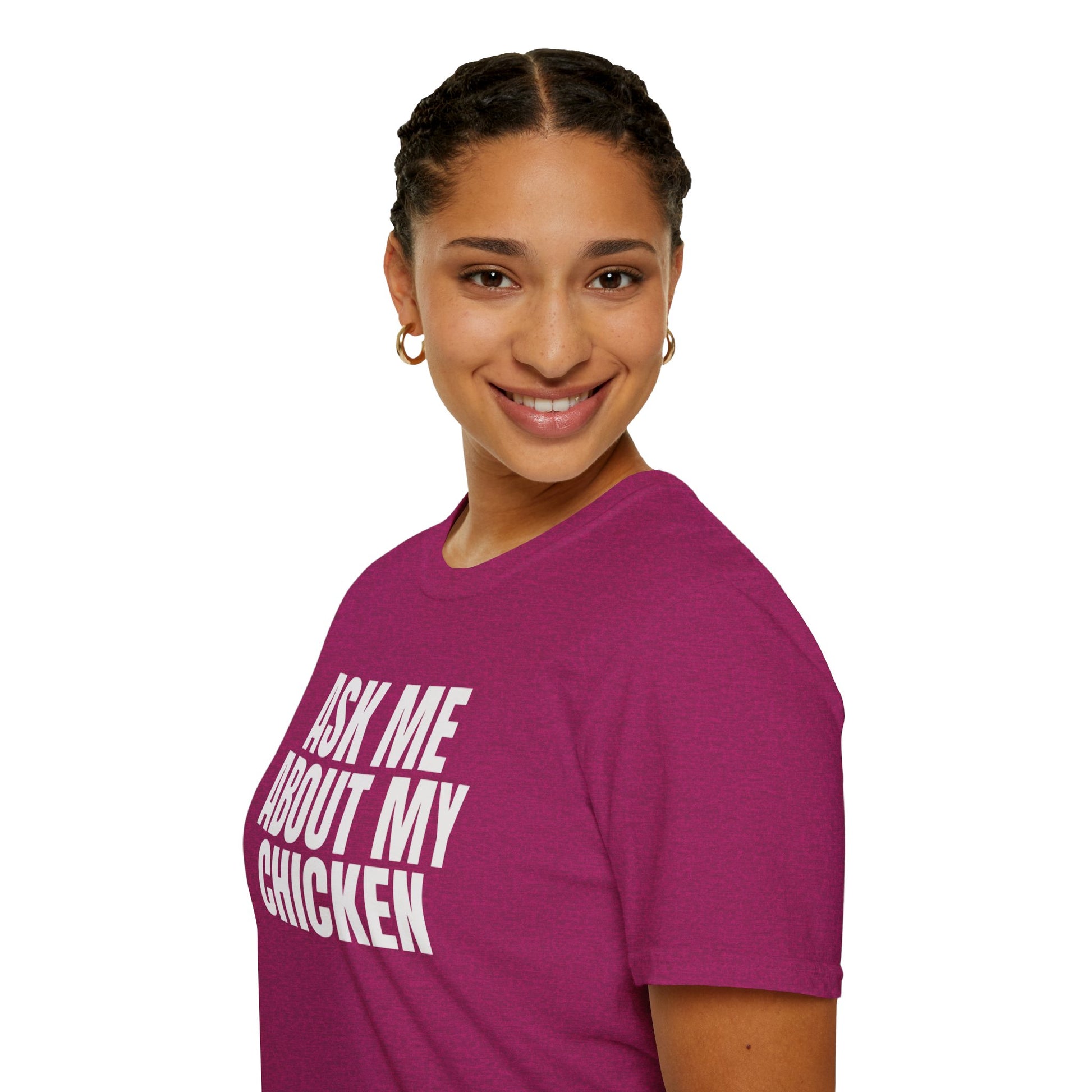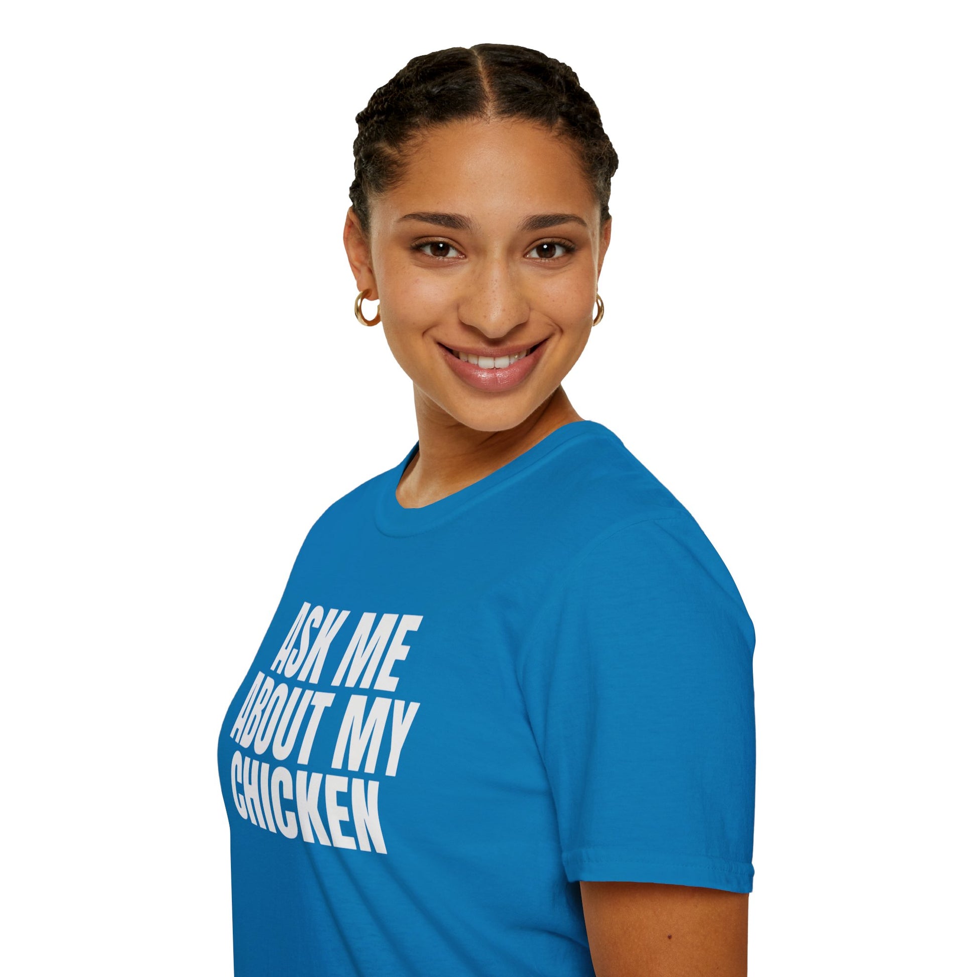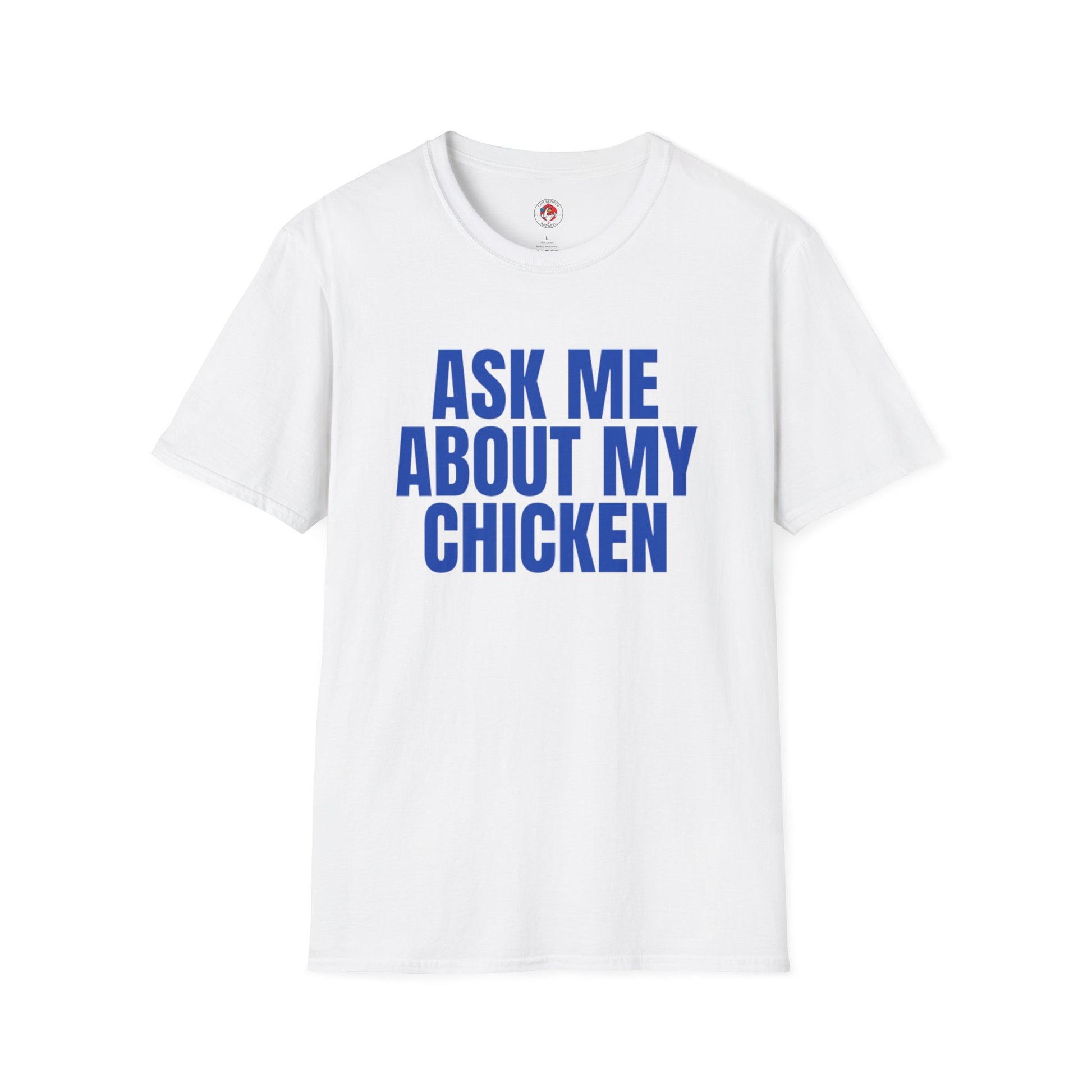 This bold unisex tee is your new conversation starter—starring sass, mystery, and a chicken with attitude. Featuring “Ask Me About My Chicken” in big, unapologetic font across the front, and Coop Daddy strutting his stuff on the back like the legend he is.