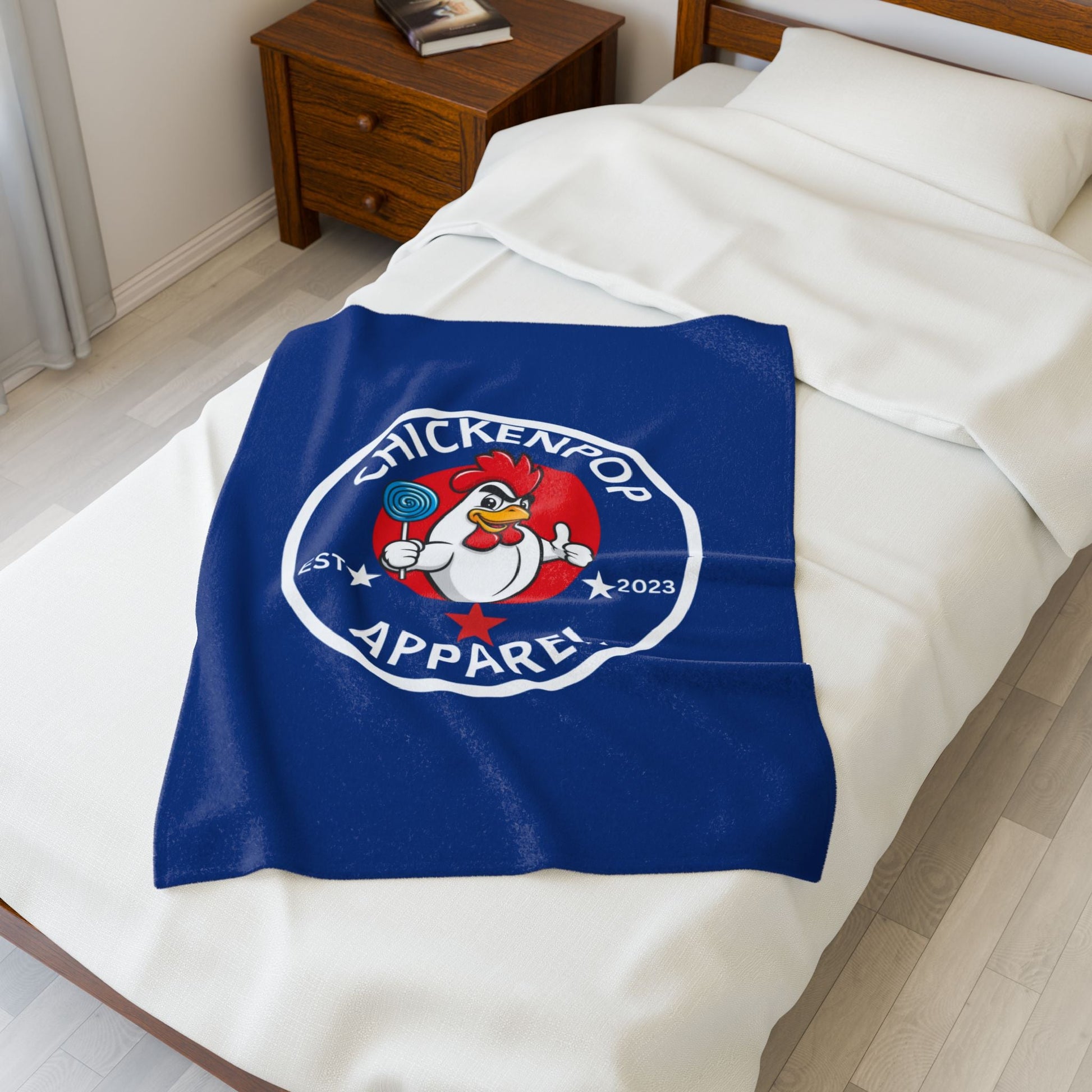 ChickenPop Original Logo Velveteen Plush Blanket Royal Blue