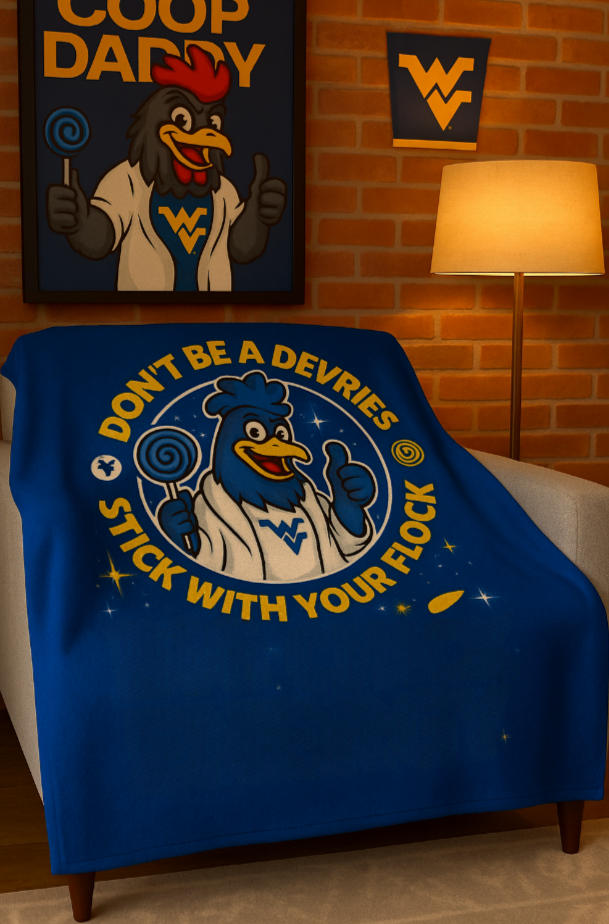 Featuring the striking Don't Be A Devries Logo with the WV Mountaineers theme front and center, this blanket is a must-have for fans who bleed blue and gold.