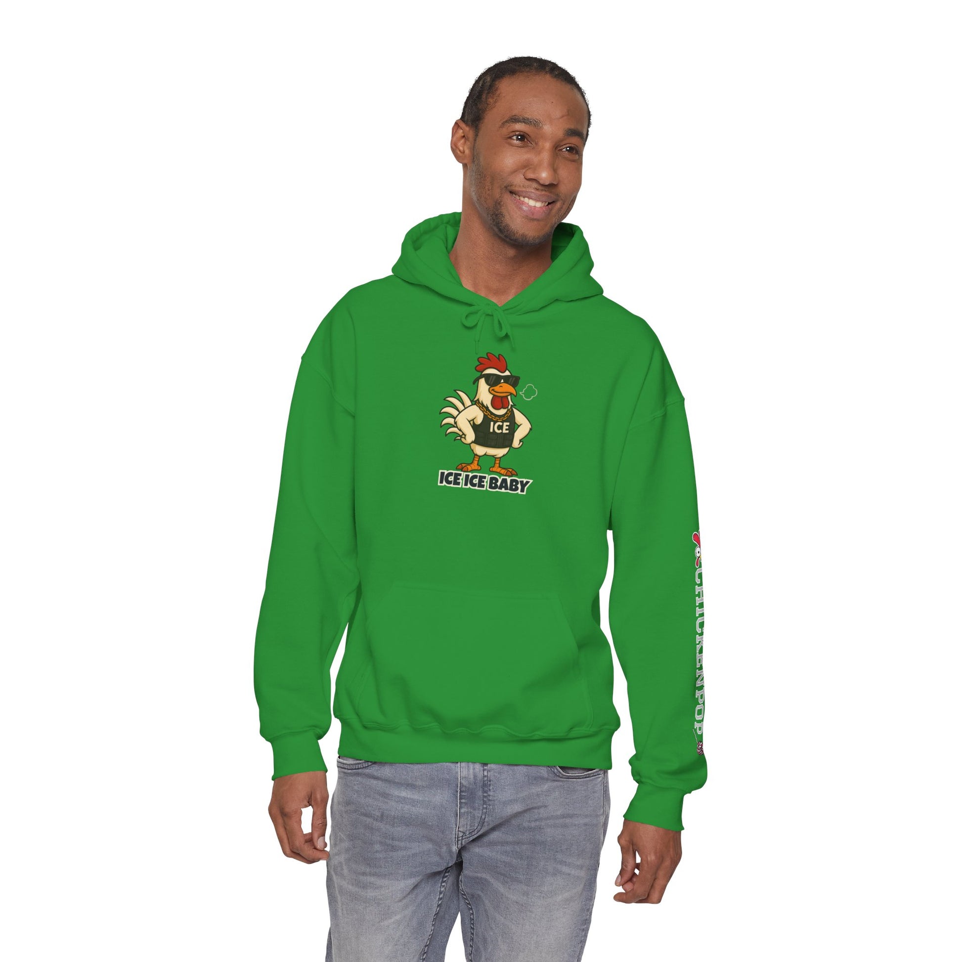 The ICE ICE BABY Hoodie brings the heat and the chill with Funky Chicken Agent Coop Daddy strutting in full 90s swagger. Featuring your favorite funky feathered icon, this shirt is a hilarious throwback for fans of retro music, Vanilla Ice, and chicken Agents who clearly know how to bust a move. Whether you're busting the block or chilling in the coop, this unisex tee delivers peak comfort and undeniable style. Perfect for poultry pun lovers, hip-hop heads, and anyone who appreciates a little barnyard bravado.