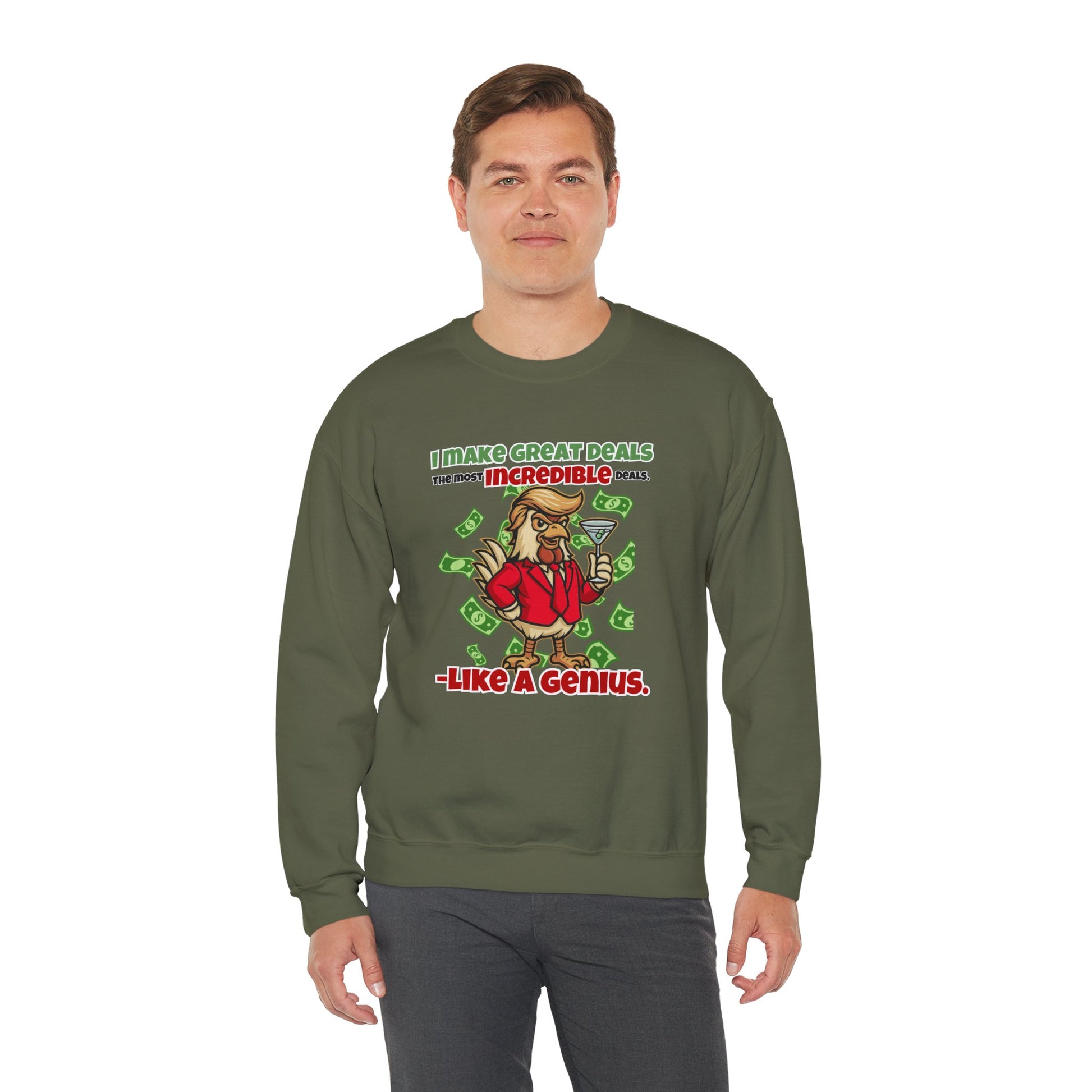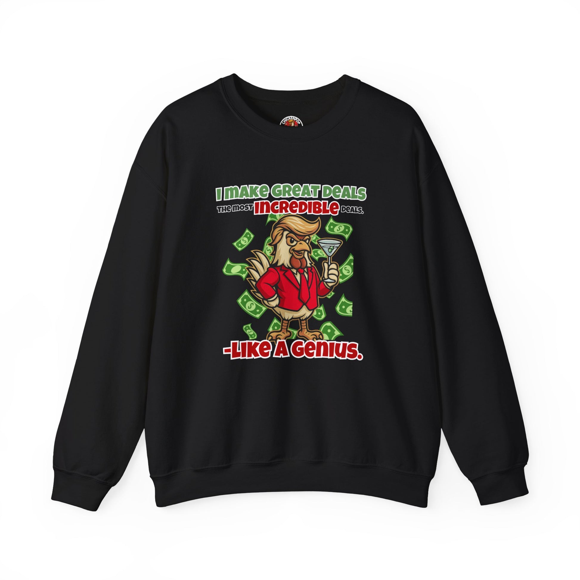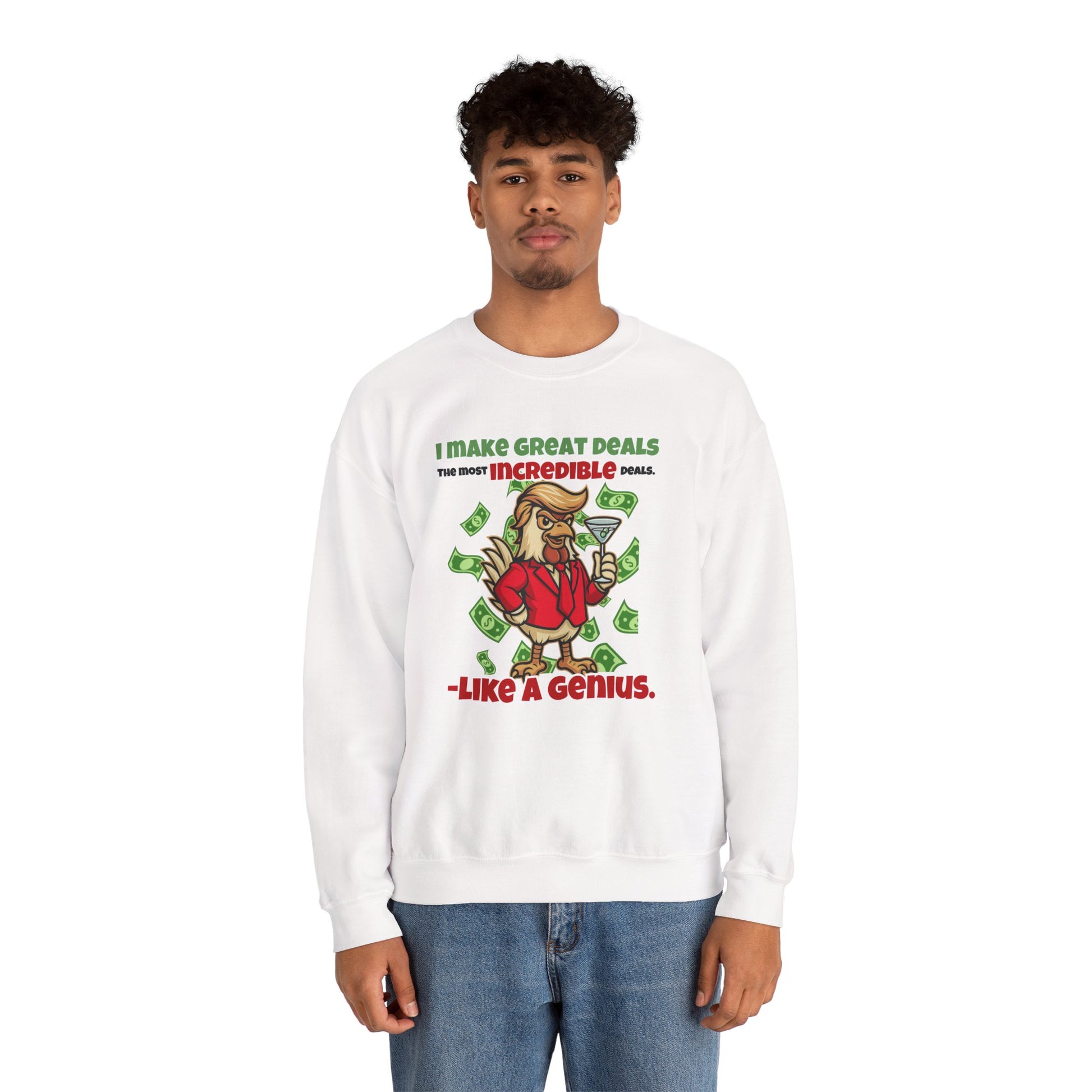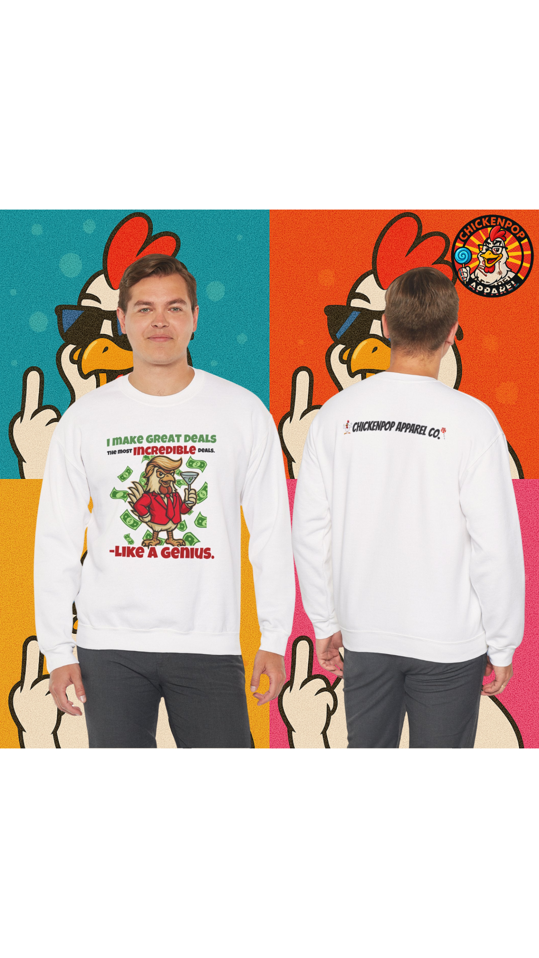 Like A Genius Crewneck Sweatshirt – Funny Political Graphic Pullover | Unisex Heavy Blend with ChickenPop Logo | Ethically Made & Cozy Cold-Weather Humor