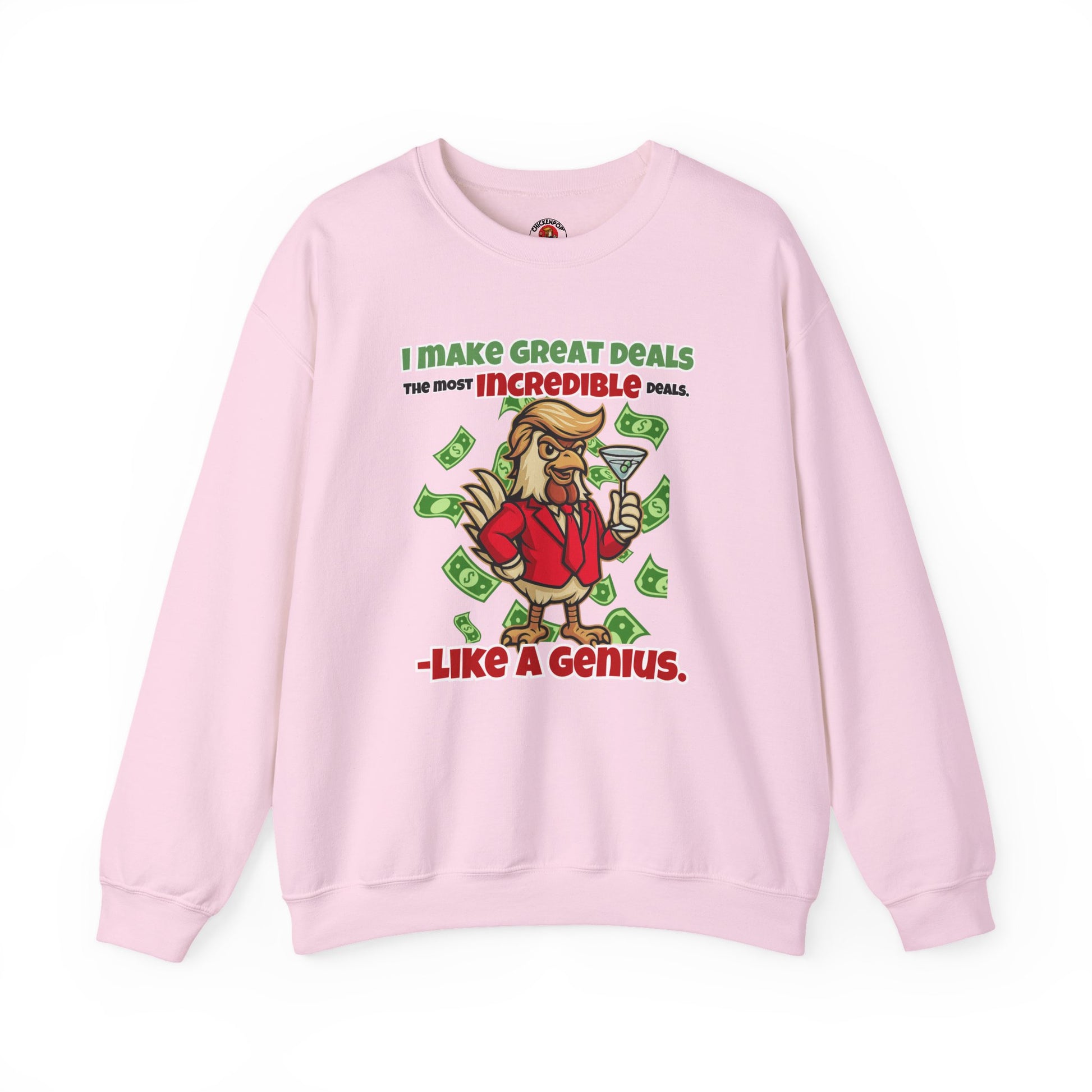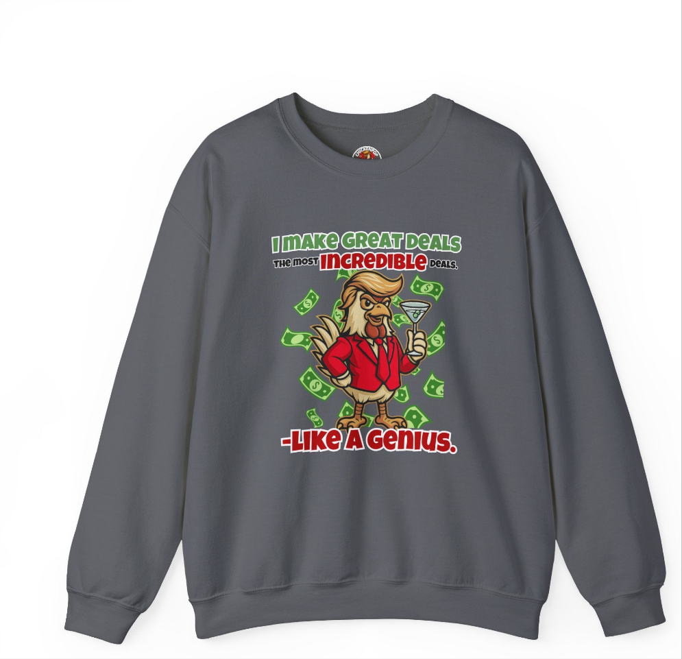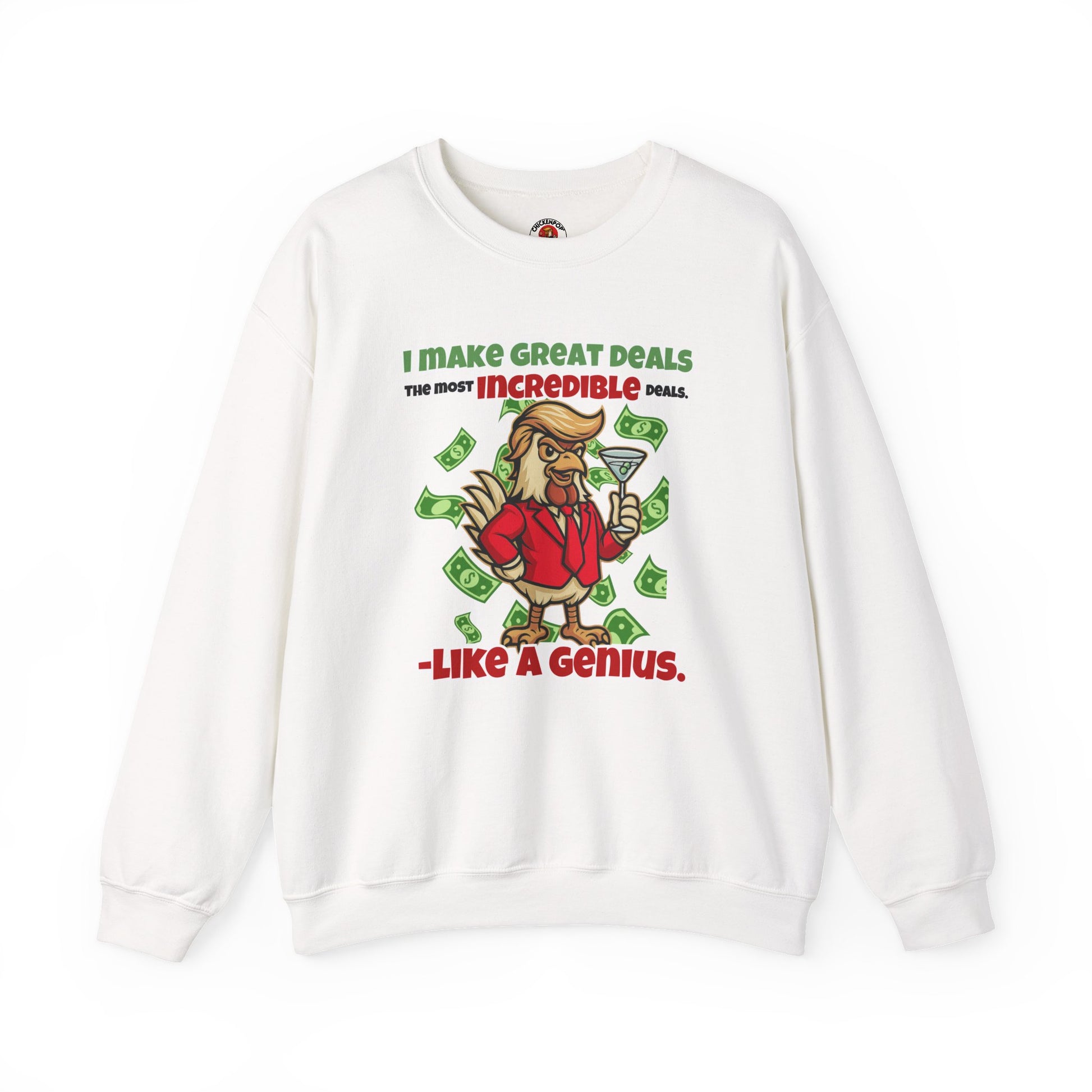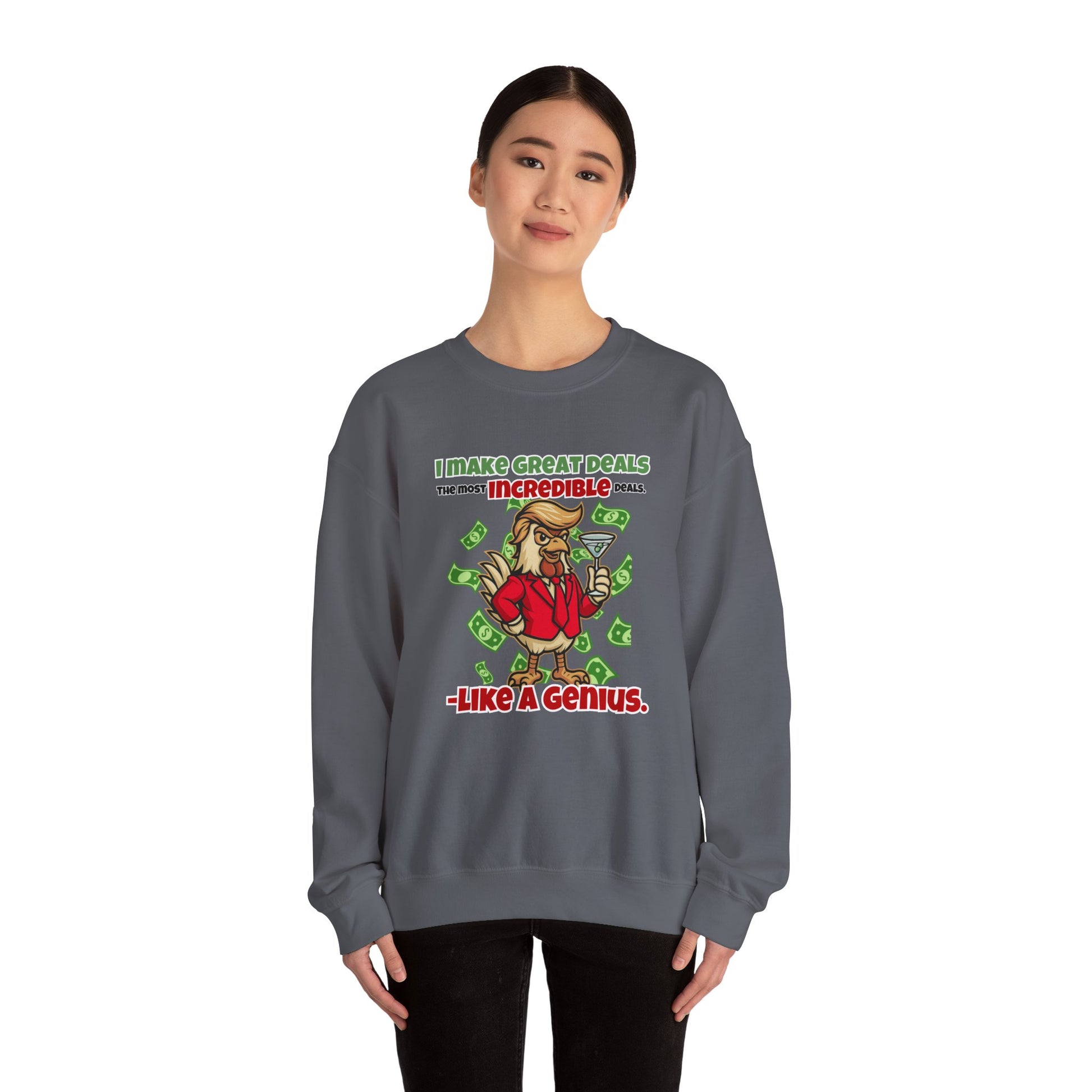 Like A Genius Crewneck Sweatshirt – Funny Political Graphic Pullover | Unisex Heavy Blend with ChickenPop Logo | Ethically Made & Cozy Cold-Weather Humor