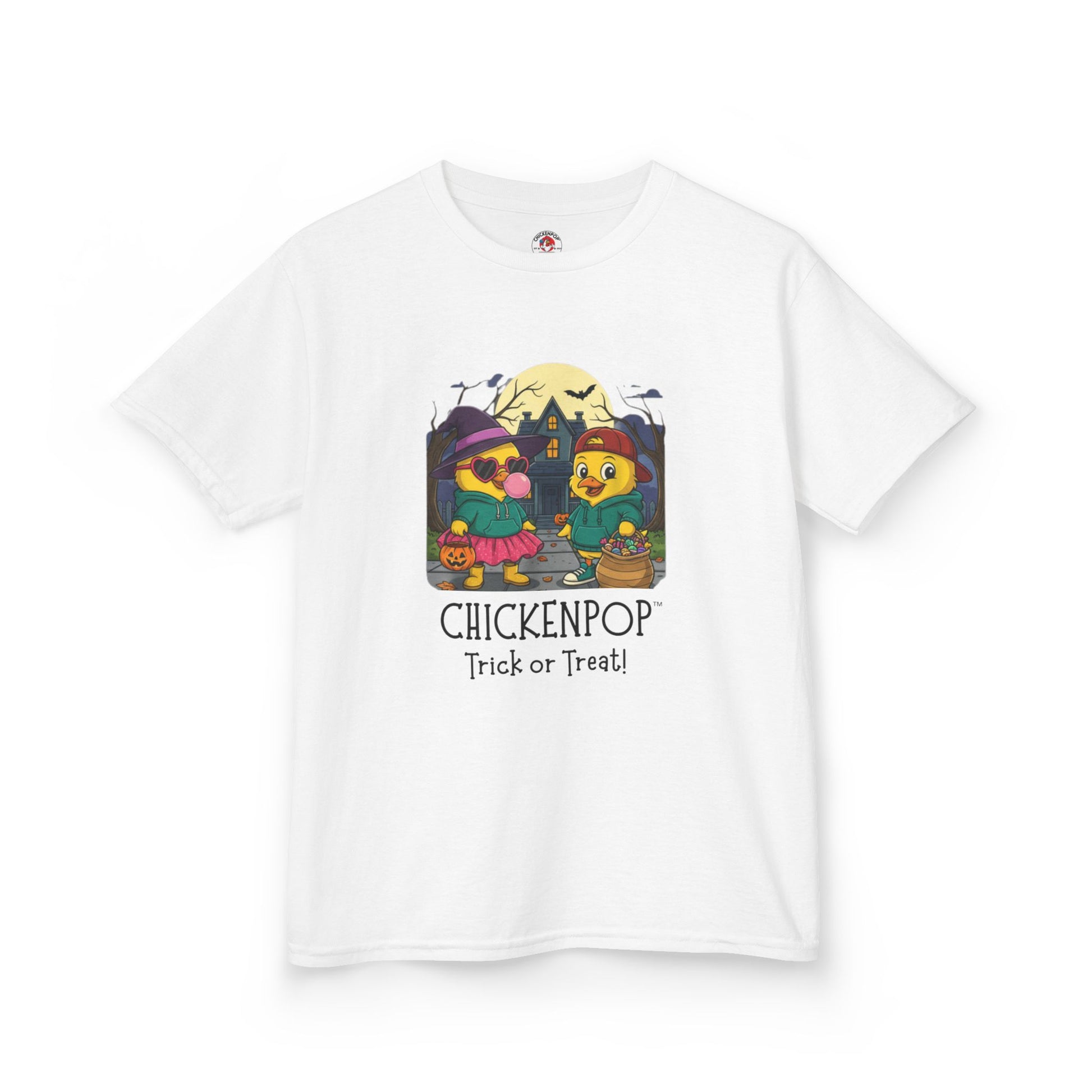 Trick or Treat Kids Halloween Tee | ChickenPop Lil’ Cluckers Sunny & Scramble Halloween Shirt